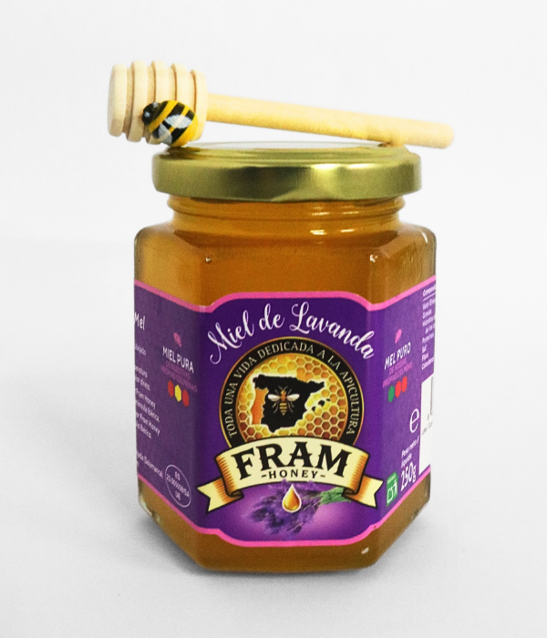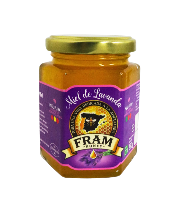 La miel de lavanda Fram Honey se obtiene del néctar de los campos de lavanda en plena floración. Es una miel clara, aromática y con un sabor suave y equilibrado.